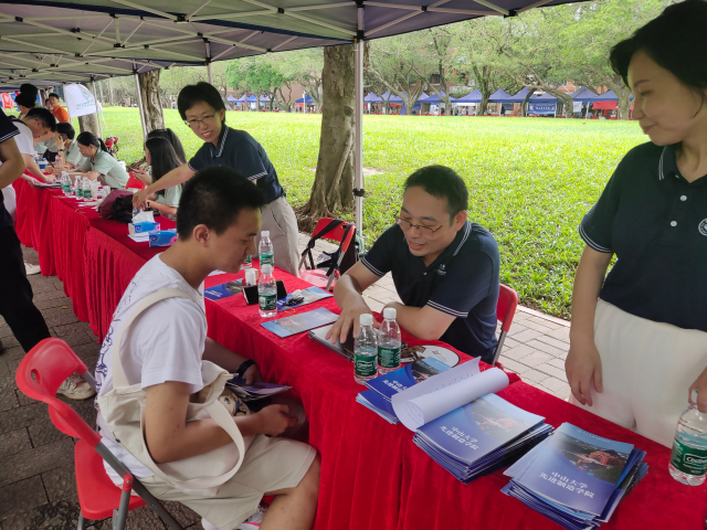 早上八点半,学院戴怡平书记、陈方副书记、教师代表、学生代表在宽阔的逸仙大道上整装待发,准备学生、家长的咨询。自九点咨询展开始,摊位前来咨询的学生和家长络绎不绝。学院老师和学生热情地向家长与同学答疑解惑,其中赵宏超老师和唐承佩老师与学生一对一讲解太阳网集团tcy8722的专业优势以及未来的发展方向。
