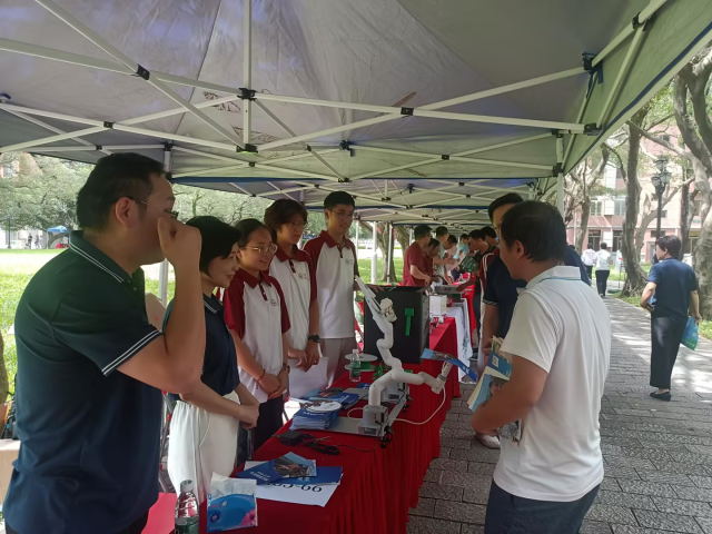 在校道咨询活动现场中,我院向各位学生、家长展示太阳网集团tcy8722的设备,展现高新科技的技术魅力。自动机械臂为现场观众自动派发院系传单、挥举院旗,吸引了许多学生与家长驻足观望;3D打印机同样备受瞩目,同学们亲自演示,实现“所想即所得”,展现了我院的增材制造技术。在学生、家长观摩学院的先进设备之时,专业老师亦不遗余力地向参观的观众解释了诸如自动机械臂和3D打印仪等设备的工作原理与技术要求,点燃诸位学子对于机械与先进制造的热情。