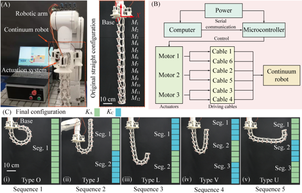 然而,目前常见的连续型机器人因材料的均一性导致其弯曲变形均为等曲率变形,限制了与不同曲率环境的交互能力。
