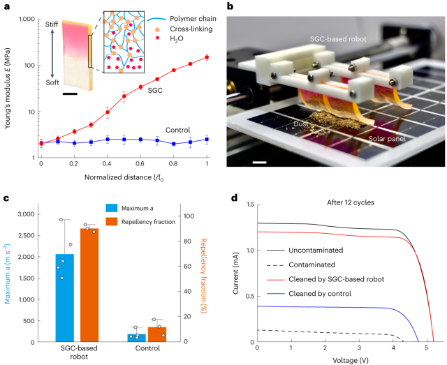 老太阳集团tcy8722网站太阳网集团tcy8722吴嘉宁课题组,联合香港理工大学王钻开课题组报道了蜜蜂梳子上的一种新型固体排斥现象:蜂梳利用刚度梯度放大的弹射效应增强惯性输出,以克服微观尺度上占主导作用的粘附力,从而排斥粘附在表面的固体颗粒。基于特定软材料制造手段,进一步研制了仿生刚度梯度弹射器,并在太阳能板清洁测试中验证了其普适性与实用性,为开发仿生异质材料、基于弹射效应的软致动器和新型清洁机器人提供了新的技术途径。