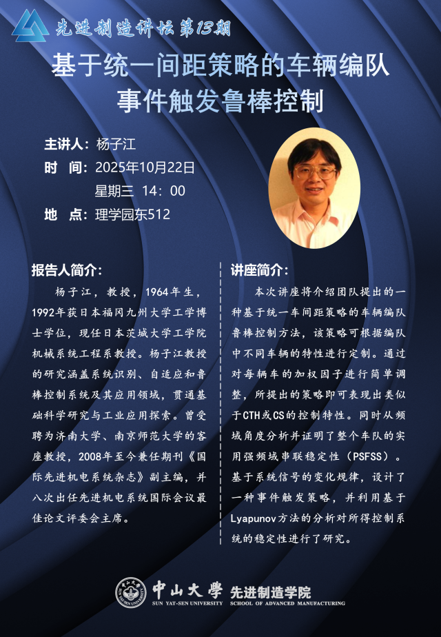 先进制造讲坛第13期 |基于统一间距策略的车辆编队事件触发鲁棒控制