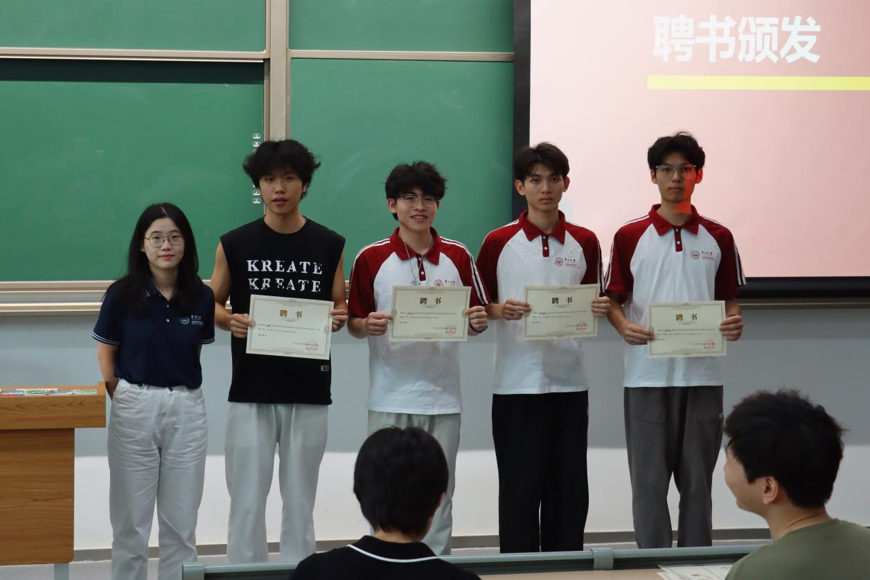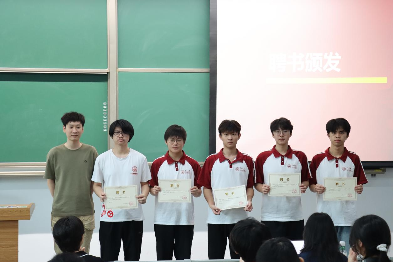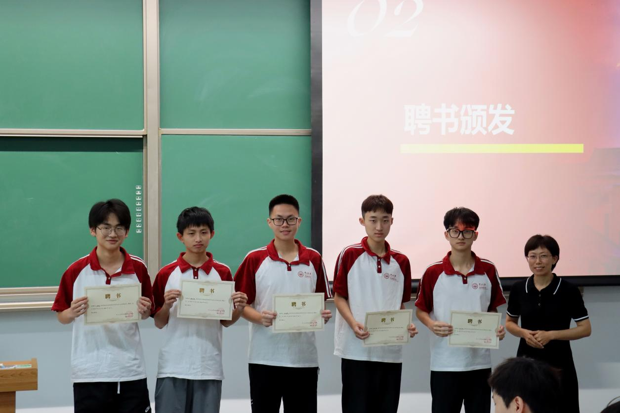 接下来是颁布聘书环节,学生会和团委的新成员依次上台领取聘书。
