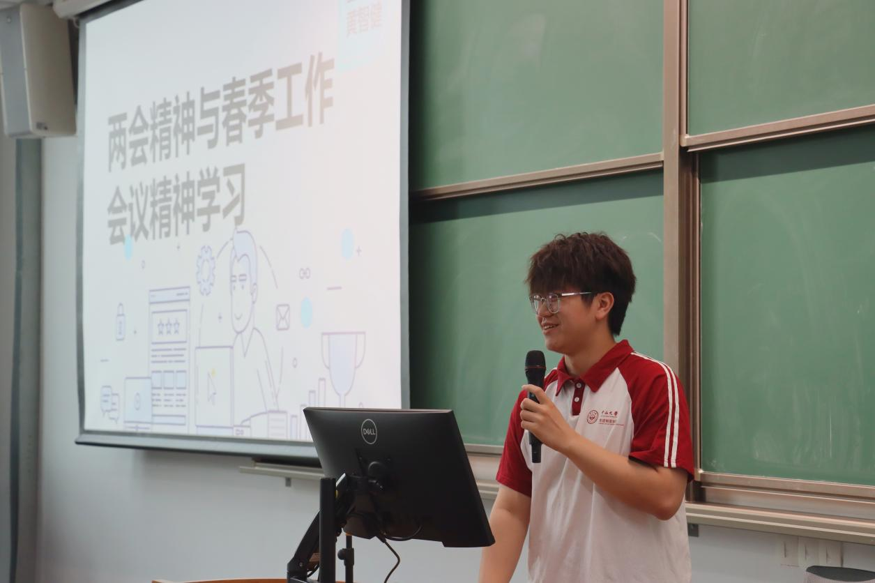 团委学生兼职副书记黄智健同学和学生会主席团丁毅同学分别以“两会精神与春季工作会议精神学习”与“问题思维与保密意识”为主题进行发言,引导团委学生会全体同学共同学习。他们将理论与实际工作结合,探讨了日常工作中会遇到的问题并对其进行了深入的剖析,提出了解决方案,让同学们受益匪浅。