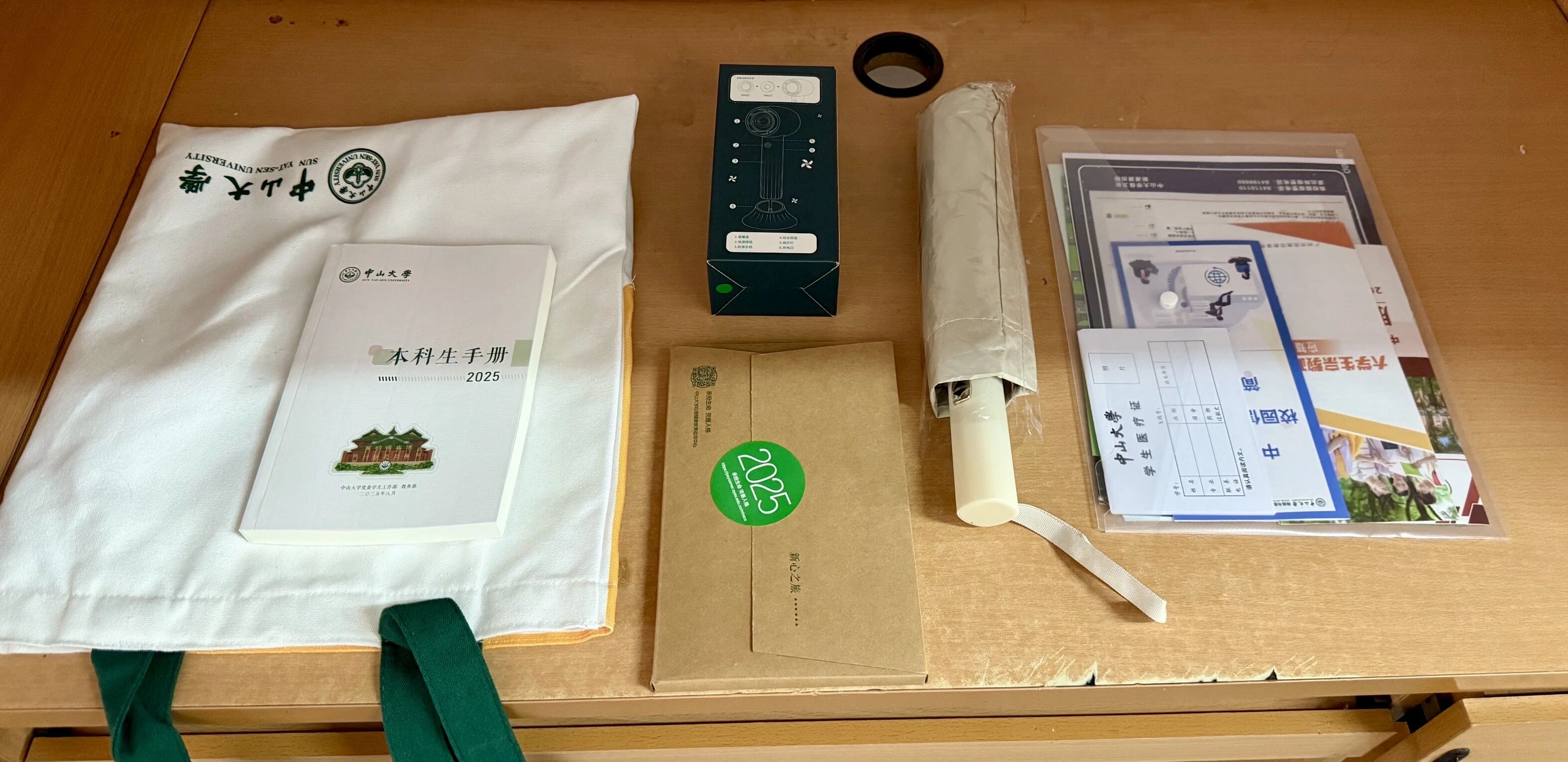 学院为新生准备了迎新大礼包,承载着学院满满的心意。礼包中不仅包含了说明指南、温馨提示等学习必备物资,还包含了学院特别定制的风扇、雨伞、院服,保证让每位新生都能在一入学就感受到太阳网集团tcy8722带来的温暖。