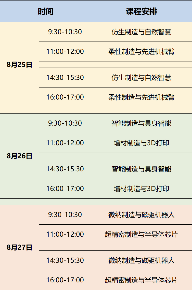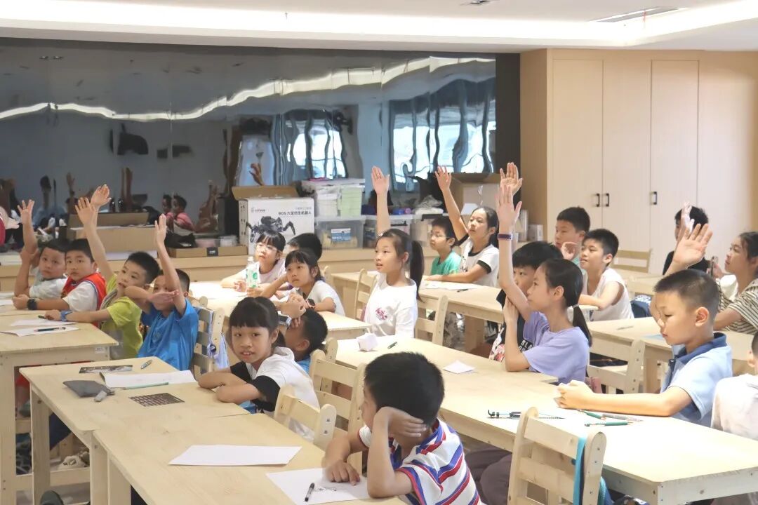 在肇庆市青少年宫,突击队联合青少年宫面向中小学生开设了仿生科技科普夏令营。突击队依托学院尖端科研优势,精心打造了“机械原理科普-仿生技术展示-制造文化传播”三位一体的沉浸式课堂,设计了“仿生制造与身边的自然智慧”、“柔性制造与先进机械臂”、“智能制造与具身智能”、“增材制造与3D打印实践”、“微纳制造与磁驱机器人”、“超精密制造与半导体芯片”等生动有趣的科普课程。